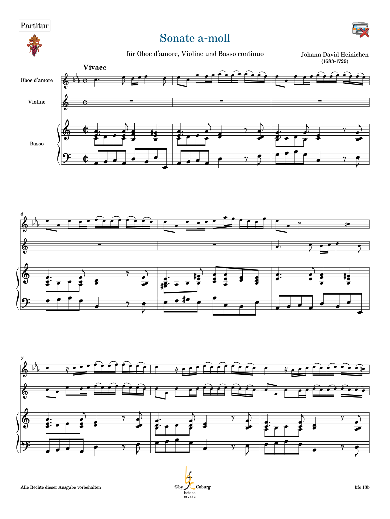 Heinichen, Johann David - Triosonate a-moll für Oboe d'amore, Violine und Generalbaß
