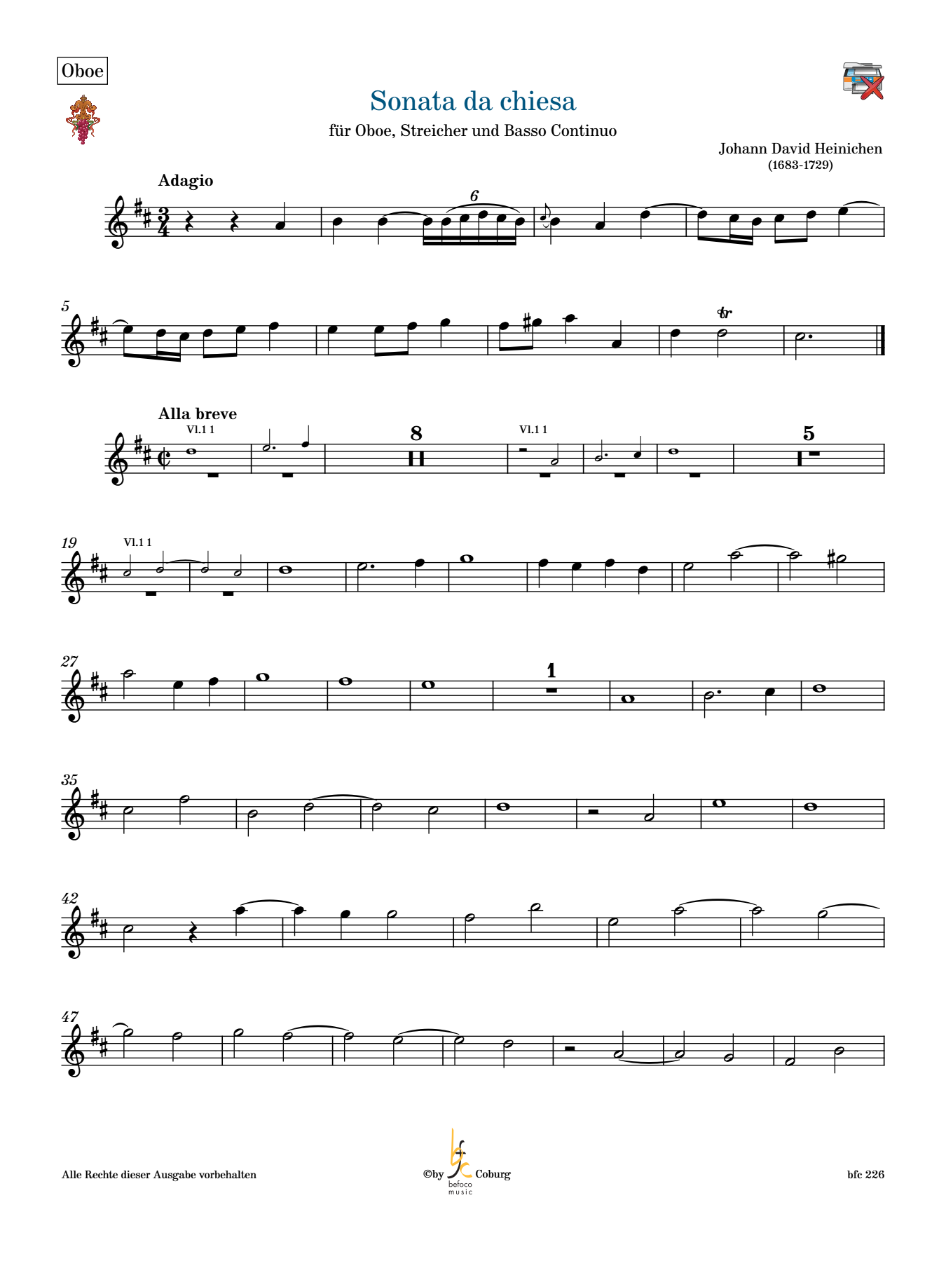 Im Musikverlag befoco erscheinen die Werke mit Oboe von Johann David Heinichen teilweise auch als Erstausgabe.